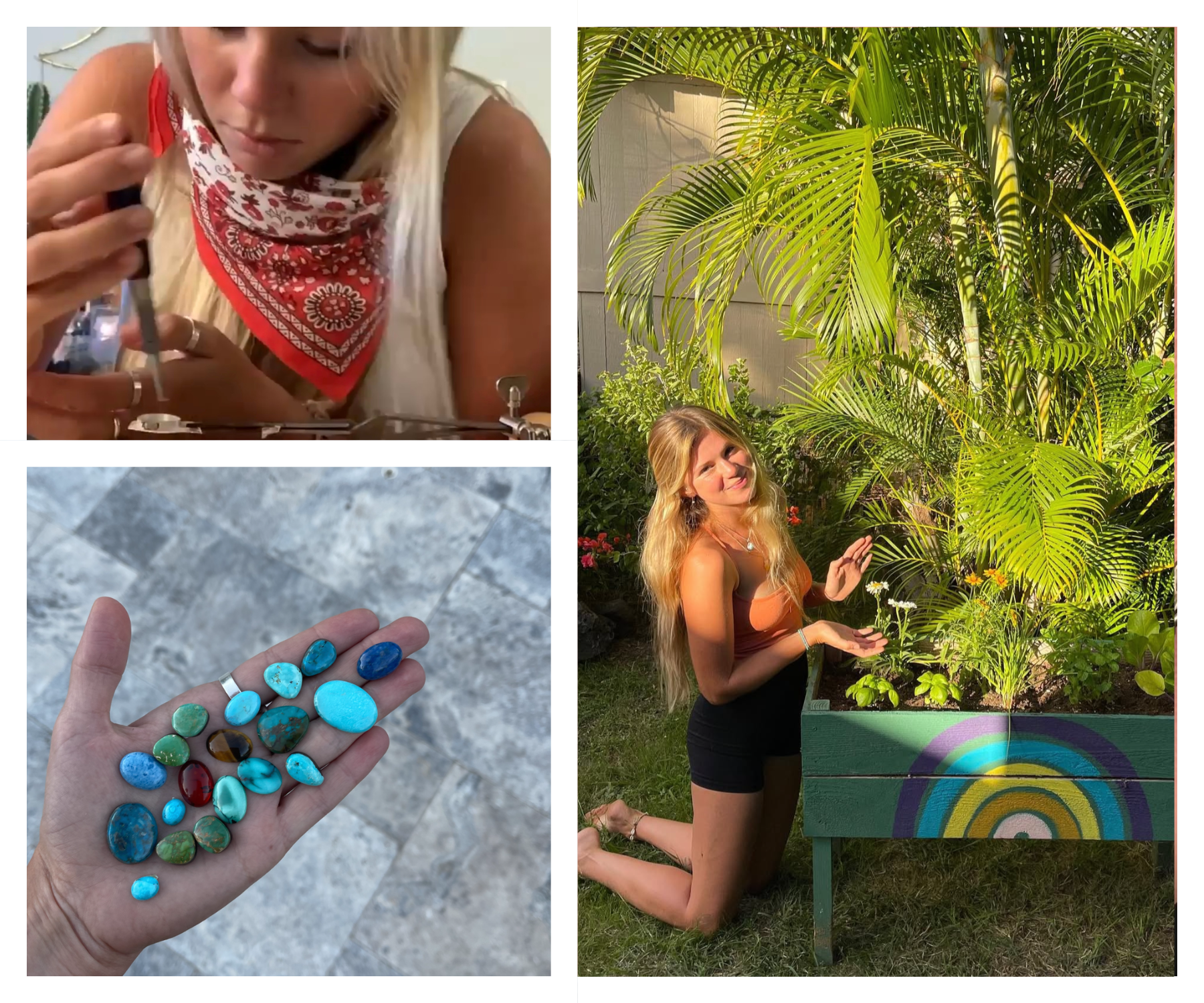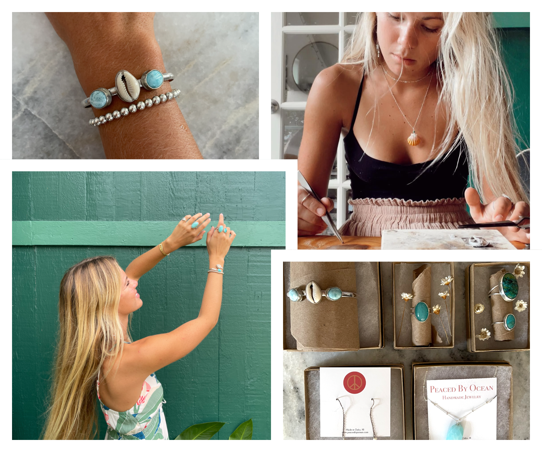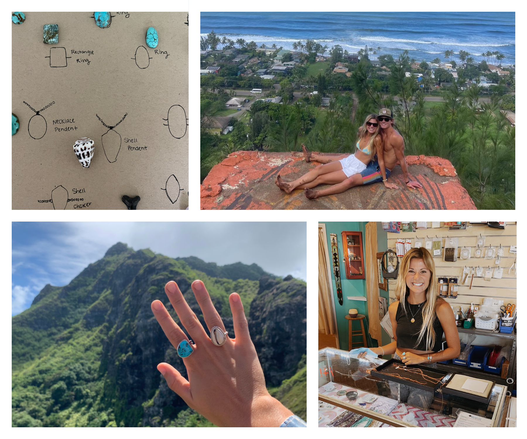 Preston and I moved to Hawaii to chase the waves. I started working at a bead shop, learning from Oahu’s best jewelry makers. Combining my family's love for turquoise with traditional island jewelry, I quickly curated my unique style.