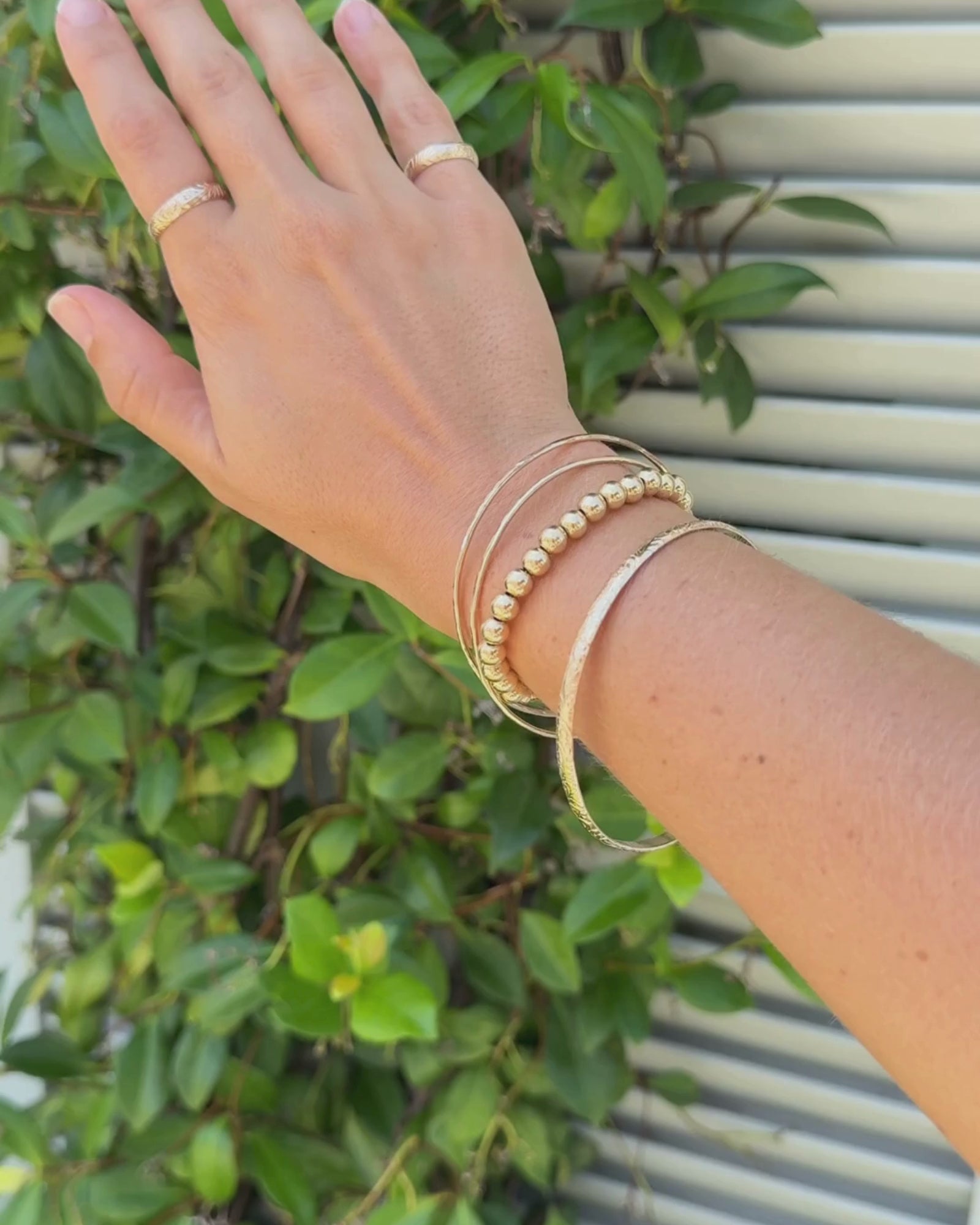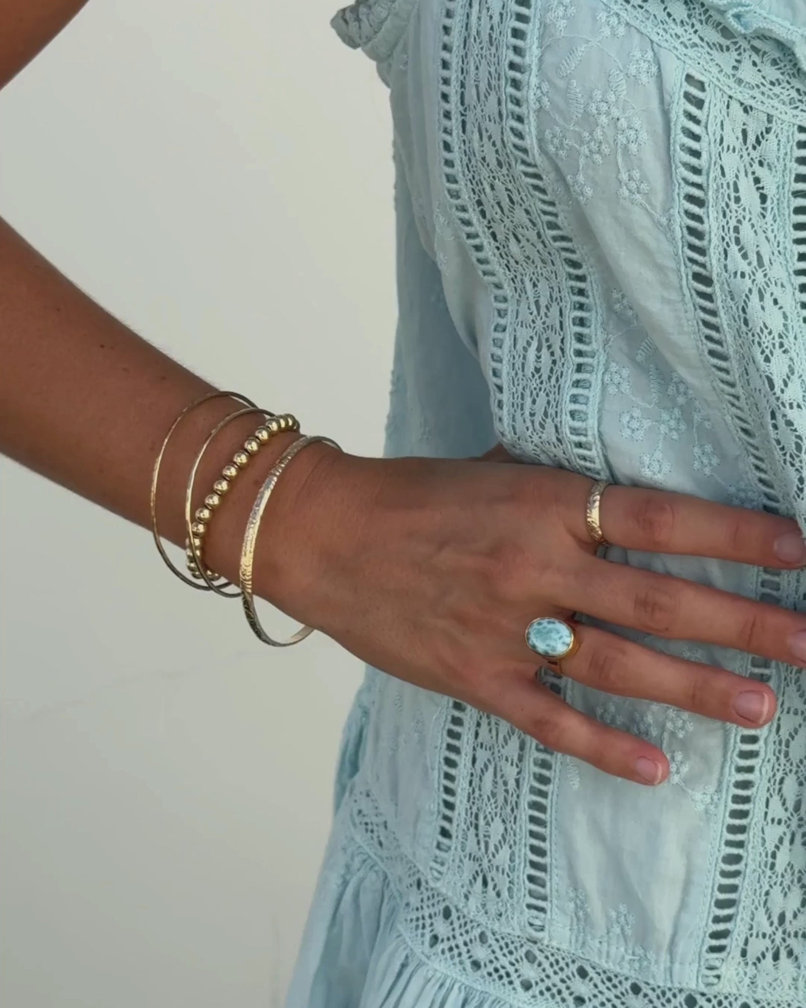 Our best-selling gold stack. Designed to move with you — from sunlit mornings on the beach to evenings out — this stack is timeless, versatile, and made to be worn daily. Layer all four pieces together for a bold statement, or wear them individually for a touch of understated elegance.