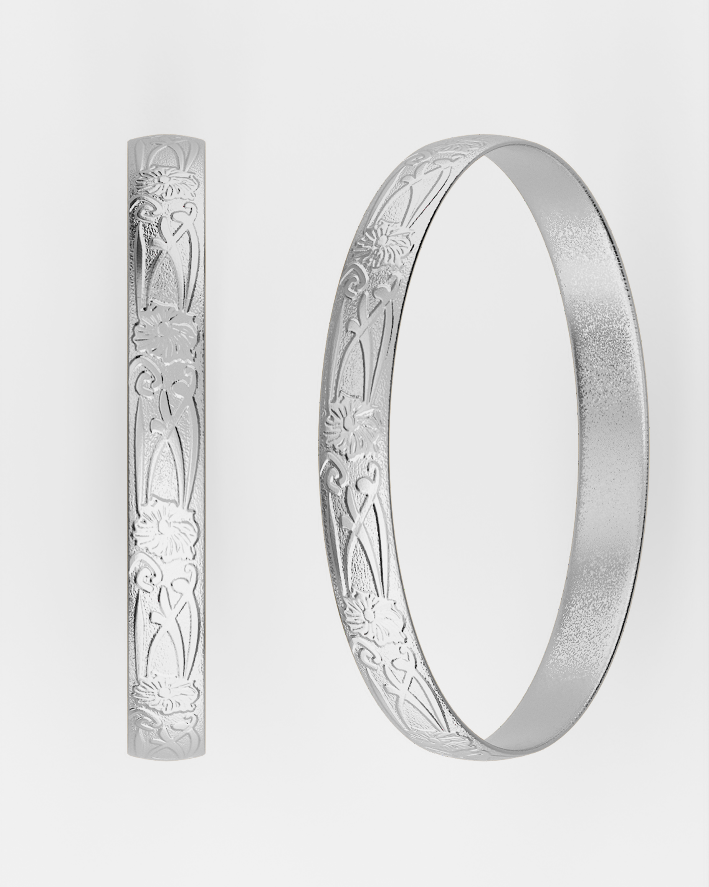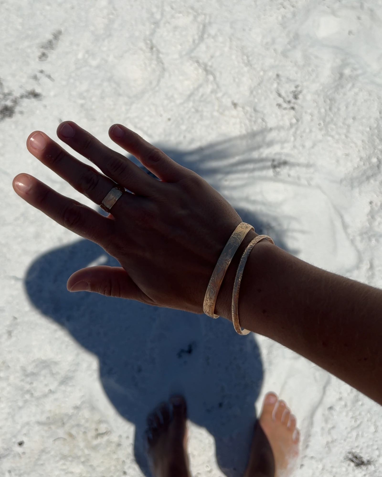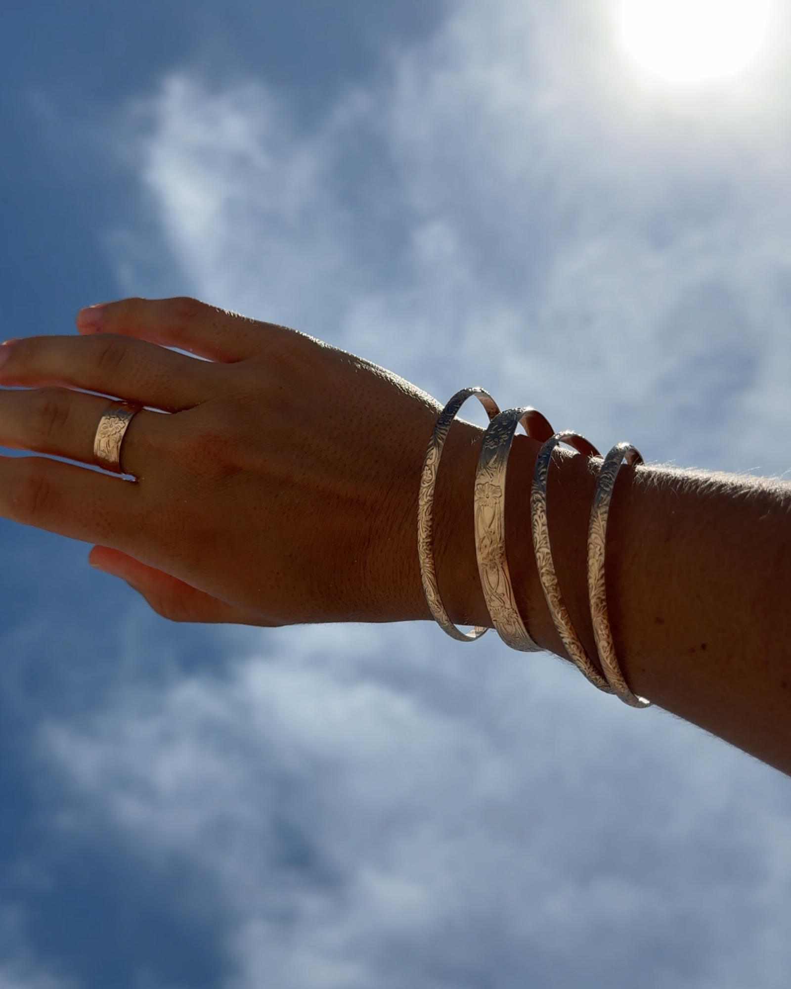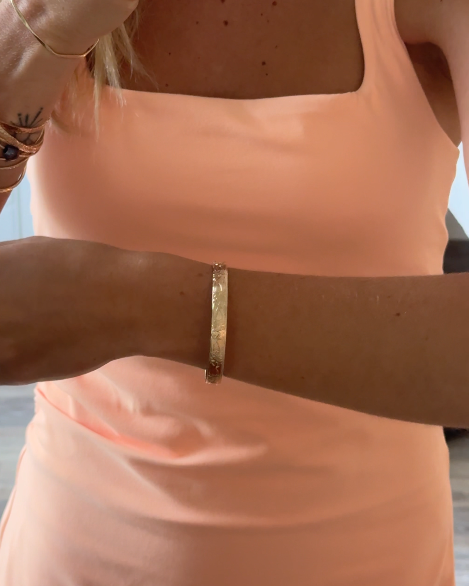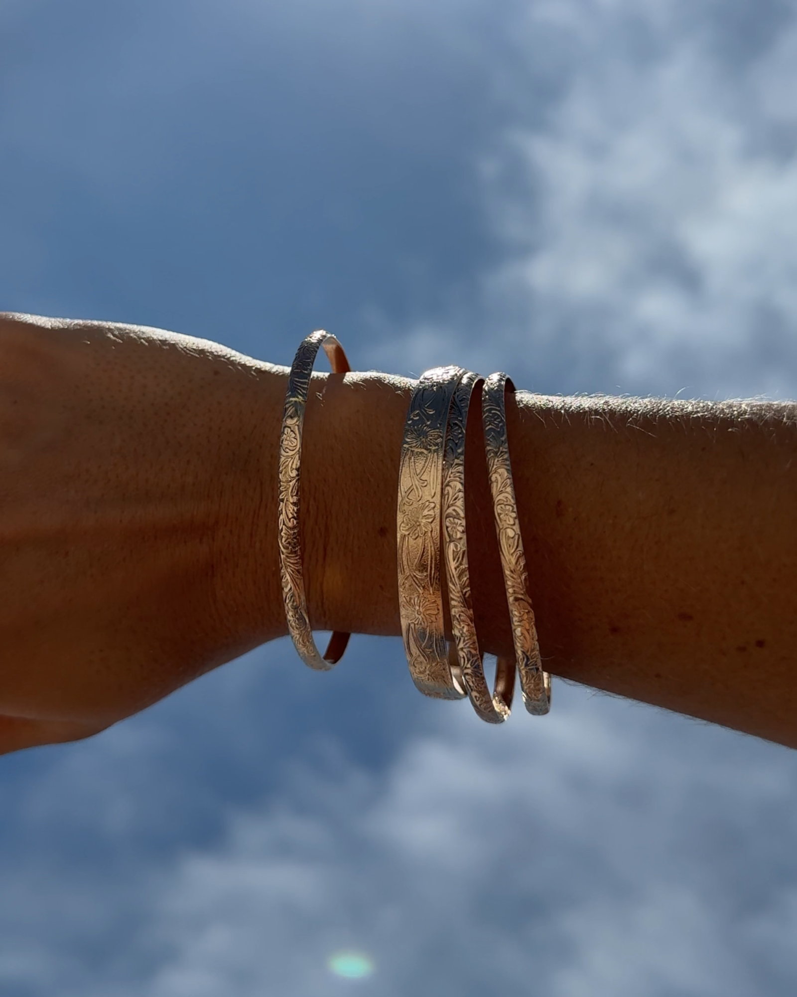 A bold take on our signature floral bangle. Twice as thick for a heavier feel, but just as timeless. Perfect for adding a bit of texture to your stack or making a statement on its own. I'm absolutely obsessed with this one!